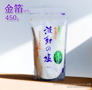純金箔入り波動の塩 450g お清め お祓い 祓塩 盛り塩 運気アップ 開運 波動調整 空間浄化 生霊 悪霊 邪気返し 邪念除け 先祖墓 先祖土地 料理のあく抜き 漬物 塩マッサージ 使い方いろいろ 波動法製造 加熱しない塩